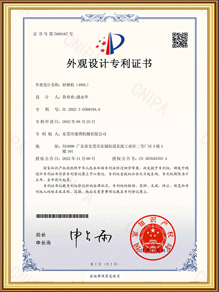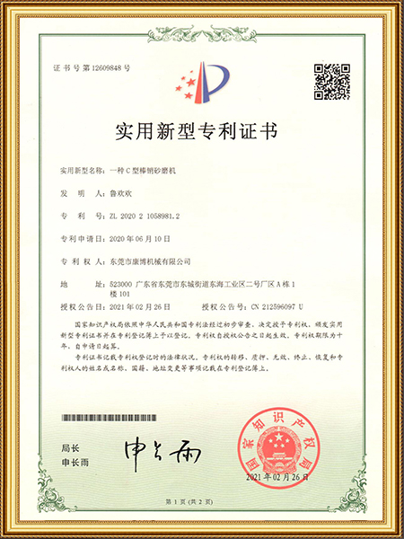 C型棒銷砂磨機(jī)專利證書