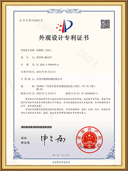 砂磨機(jī)(150L)證書