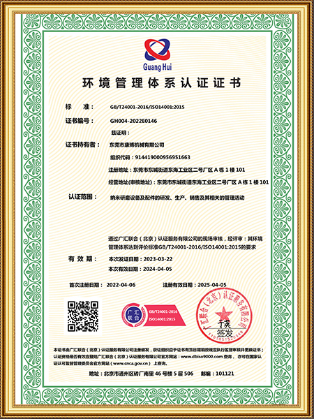 環(huán)境管理體系認(rèn)證證書