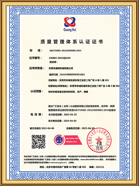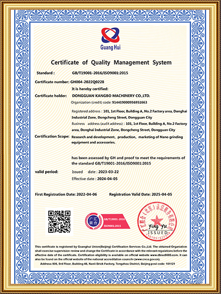 砂磨機(jī)(400L)證書